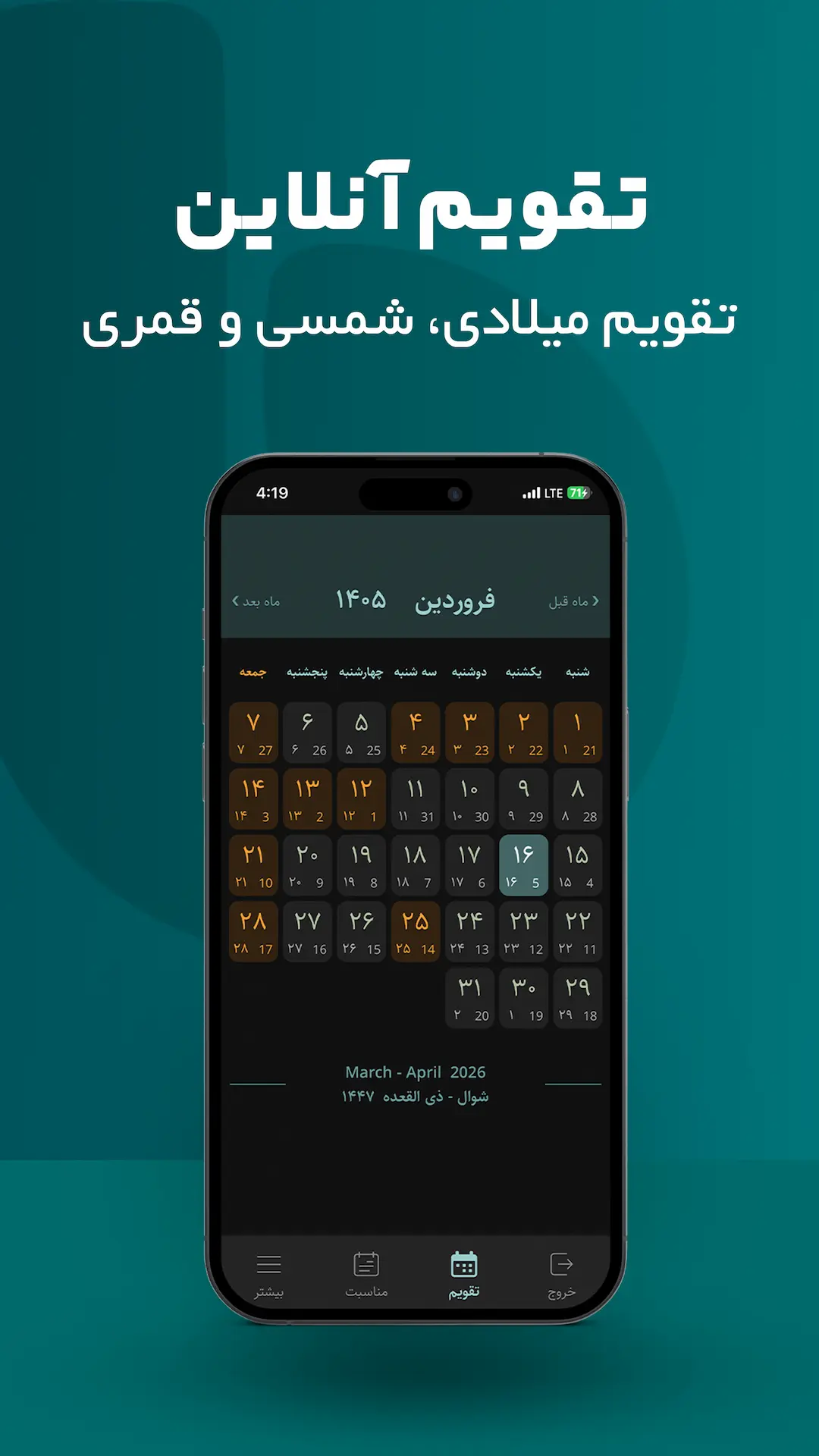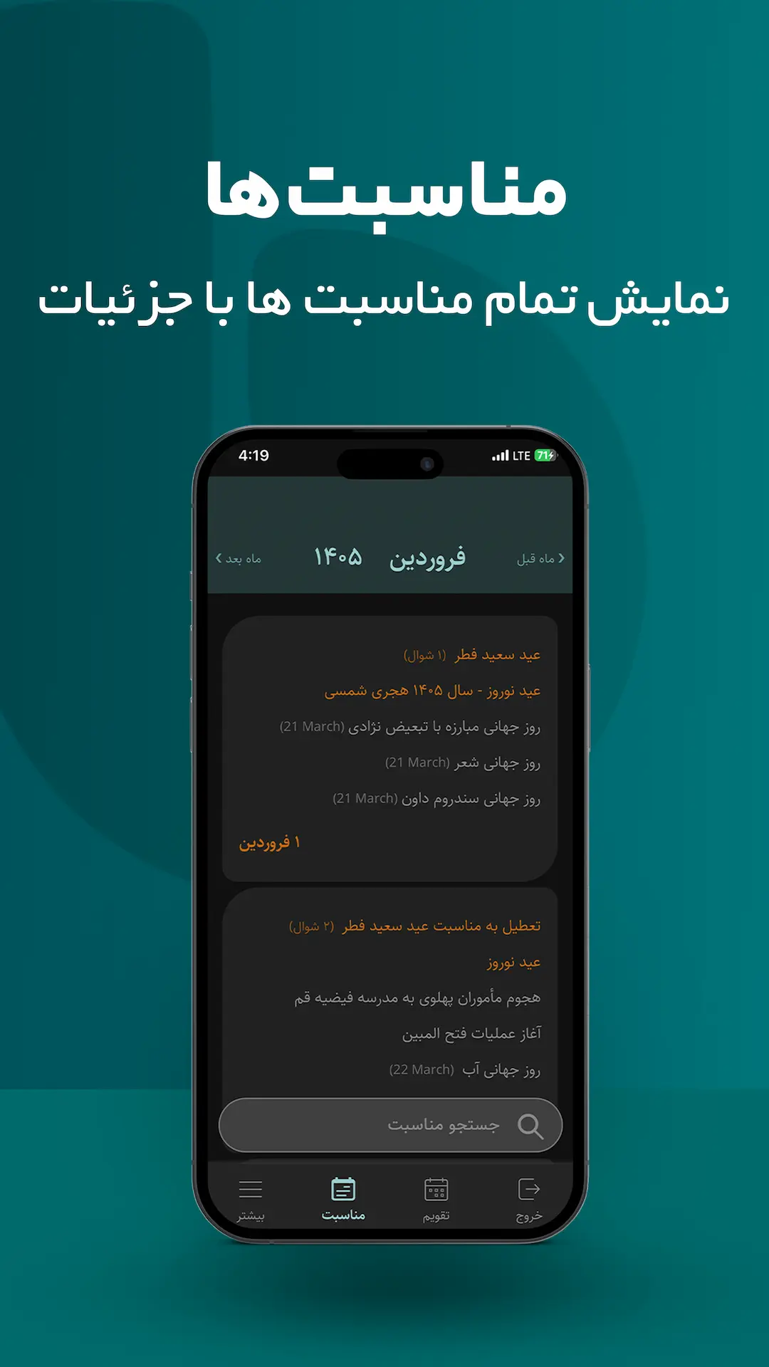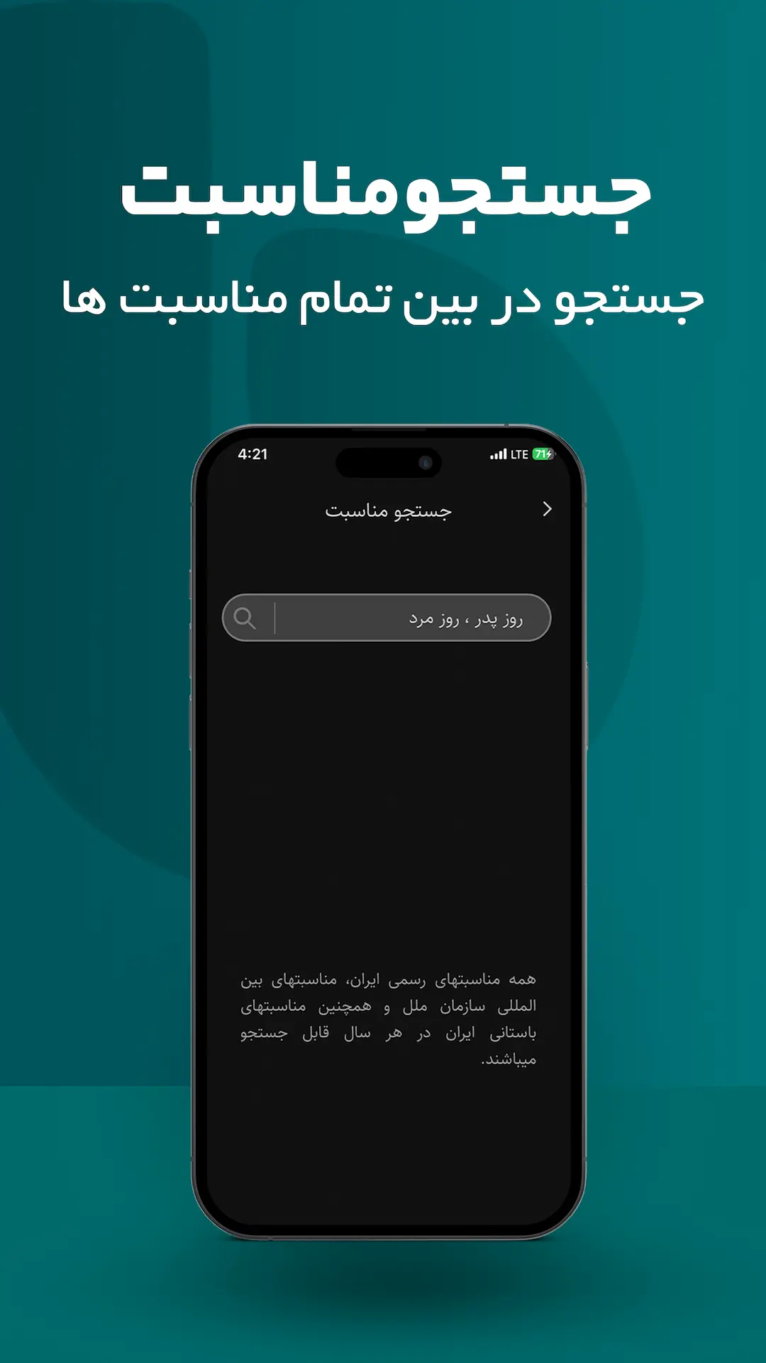 جستجو در مناسبتها (مثلاً سریع پیدا کنی “روز معلم” دقیقاً چه تاریخی است)