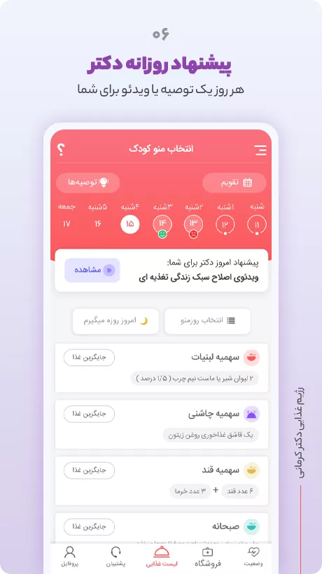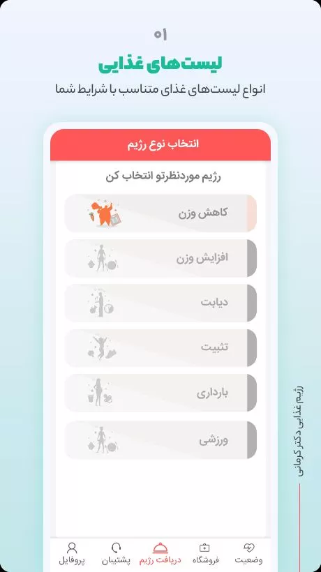 . ارائه رژیم بر اساس شرایط جسمانی شما