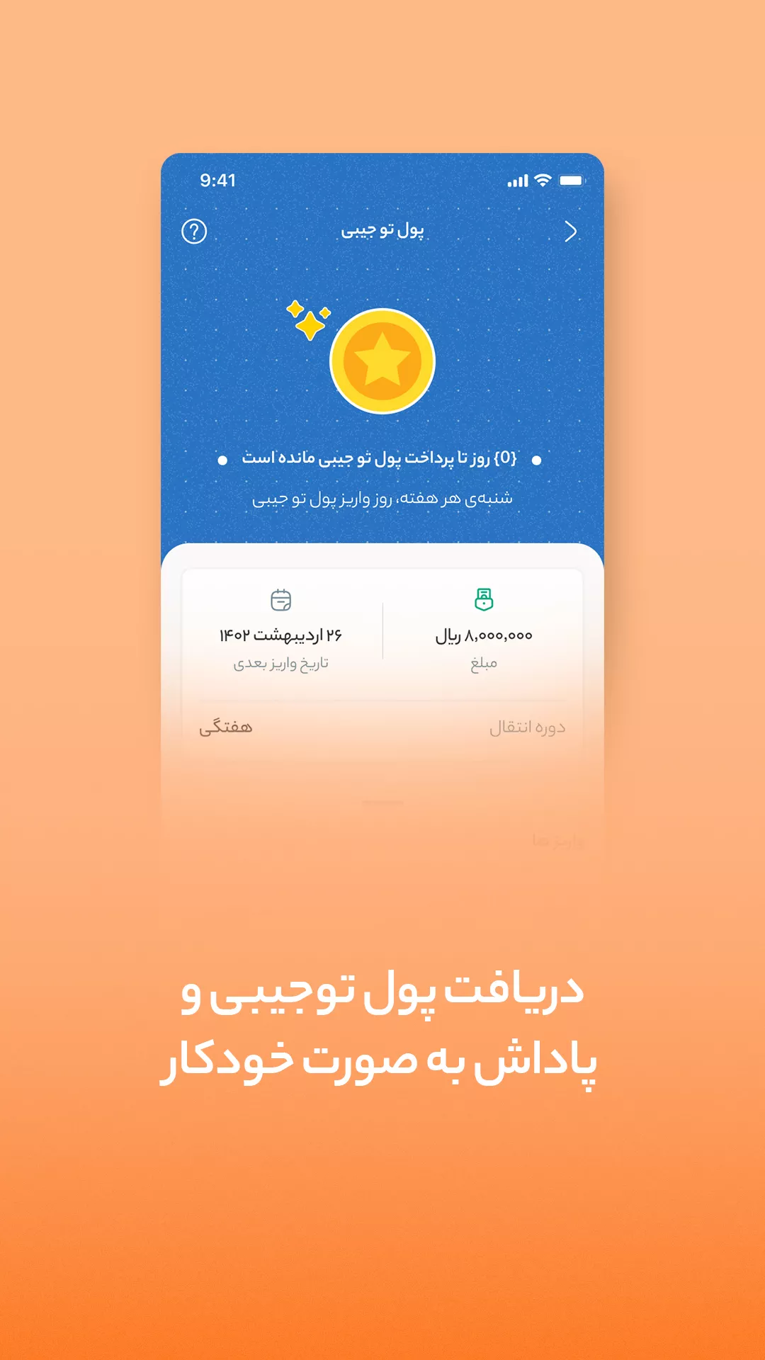واریز خودکار پول توجیبی: والدین میتوانند یک برنامه واریز خودکار هفتگی یا ماهانه برای پول توجیبی تنظیم کنند. این سیستم به فرزند کمک میکند تا با مفهوم درآمد منظم و مدیریت بودجه آشنا شود.