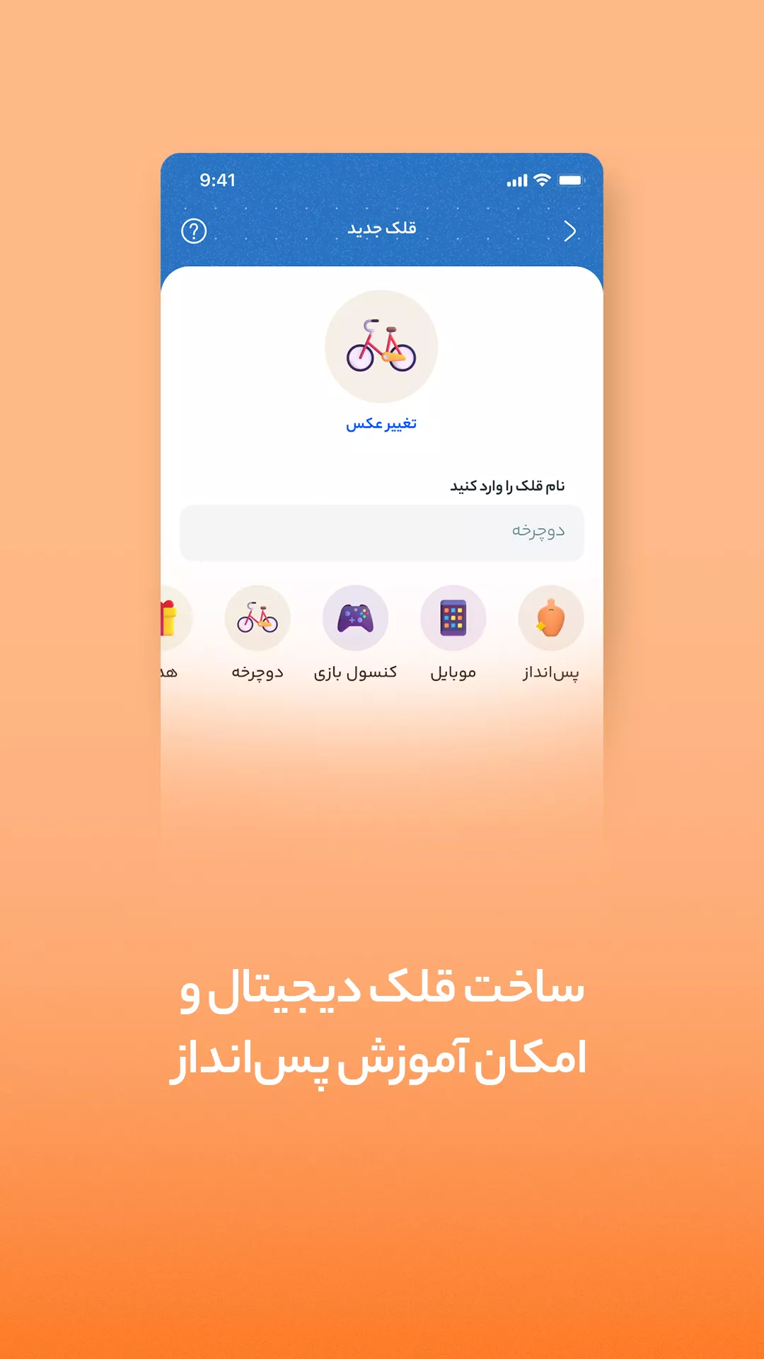 قلک مجازی و هدفگذاری: قابلیت قلک مجازی به فرزندان اجازه میدهد تا برای اهداف مشخص پسانداز کنند. آنها میتوانند پیشرفت خود را مشاهده کرده، پول به قلک اضافه کنند و مفهوم هدفگذاری مالی را درک کنند.