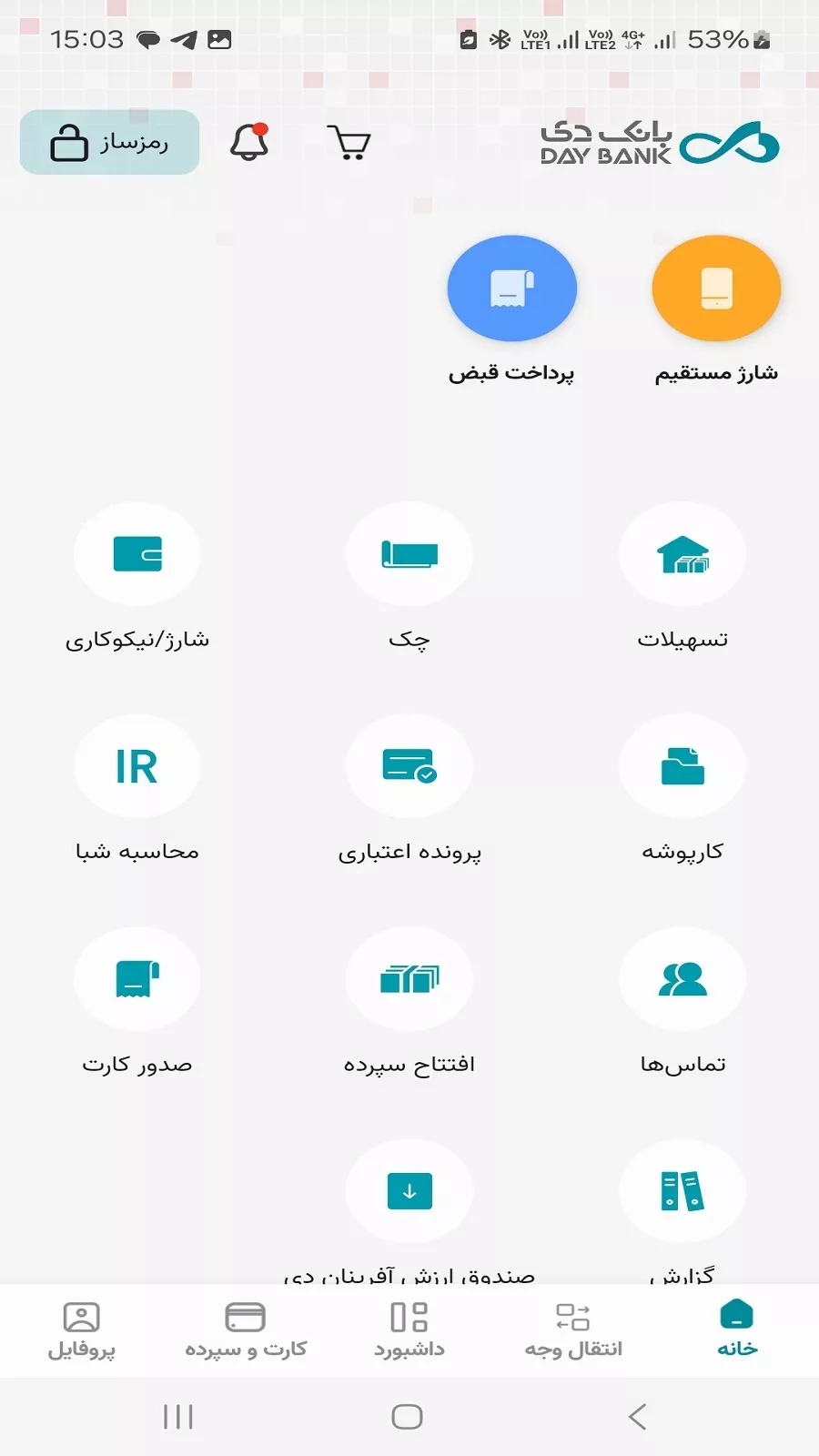 . انتقال وجه از روشهای مختلف مثل کارت به کارت و پایا و …