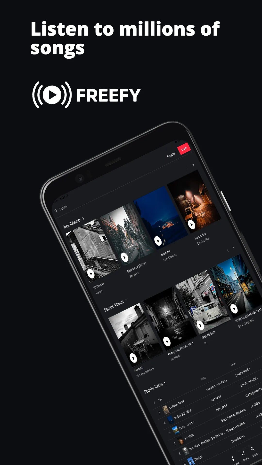 با Freefy، گوش دادن به آهنگ های هنرمندان مورد علاقه شما بسیار آسان است. Freefy بستر مناسبی برای گوش دادن به موسیقی مورد علاقه شما در تلفن همراه، رایانه لوحی یا رایانه است.