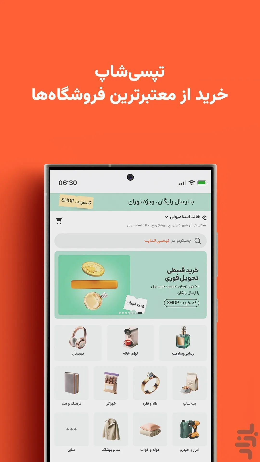 هرچه نیاز داشته باشید را میتوانید در تپسیشاپ پیدا کنید؛ از لوازم آرایشی و کالای دیجیتال تا خوراکی و تنقلات، لوازم خانه و آشپزخانه، سکه و طلا، غذا و ملزومات حیوانات خانگی، لوازمالتحریر و… .
