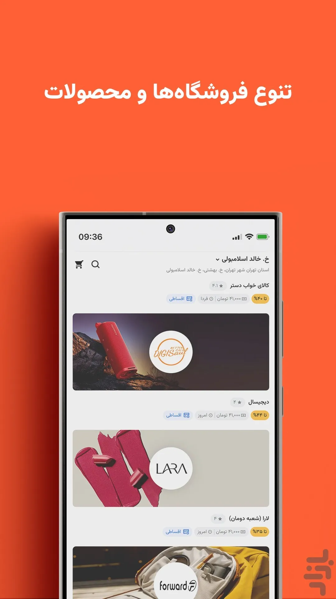 ۳- از بین فروشگاههای مختلف، فروشگاه مورد نظر خود را انتخاب کنید.