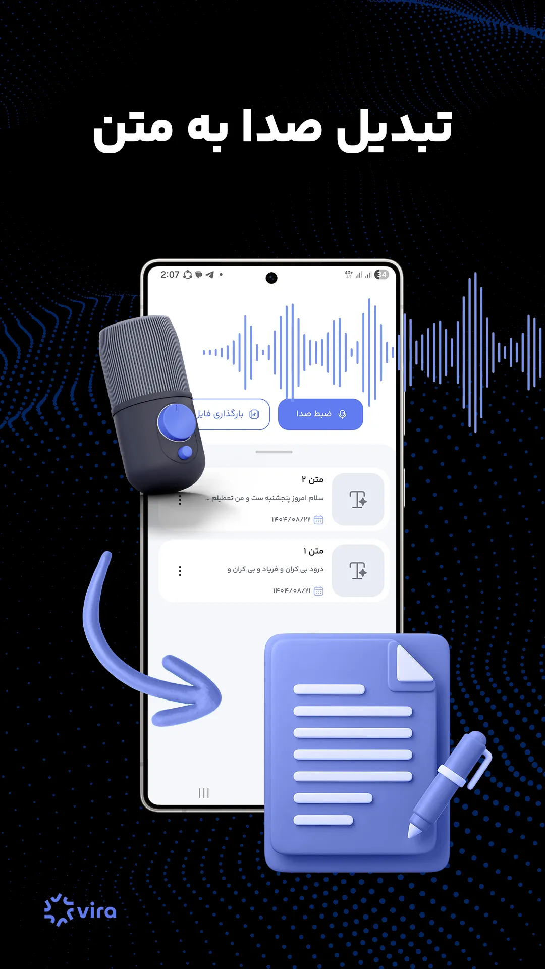 سرویس آوانگار موجود در هوش مصنوعی ویرا، ابزار تبدیل گفتار به متن است که میتوانید صدای خود را ضبط کرده یا فایل صوتی بارگذاری نمایید و خروجی را بهصورت متن قابل ویرایش دریافت کنید. امکان ارائه خروجی در قالب فایلهای متنی وpdf، این سرویس را برای جلسات کاری، مصاحبهها، تولید محتوا و یادداشتبرداری دانشگاهی کاربردی کرده است. تشخیص گفتار محاورهای، عملکرد در محیطهای پرسروصدا و پشتیبانی از لهجههای بومی، ویژگیهای جذاب آوانگار هستند؛ قابلیتی که در بسیاری از ابزارهای بینالمللی برای زبان فارسی به شکلی محدود ارائه شده است.