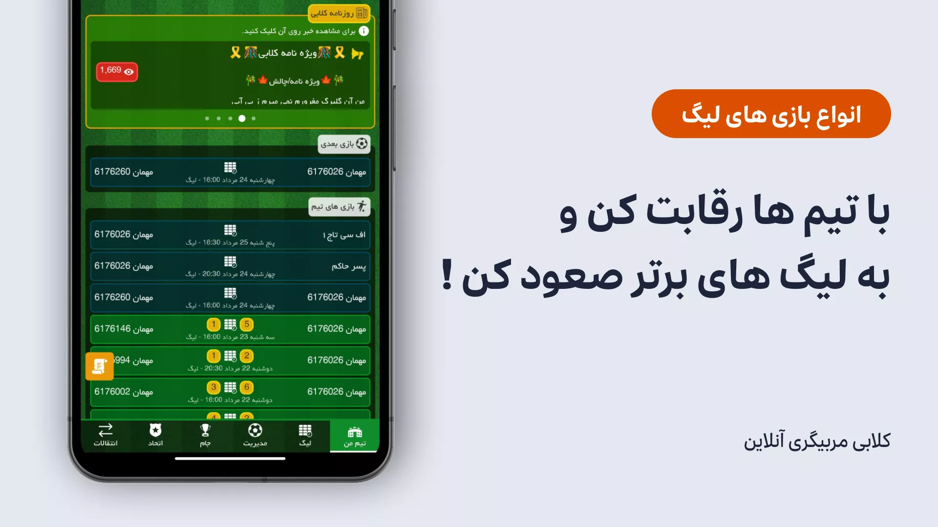 رقابتهای هیجانانگیز: در انواع لیگهای هفتگی (با ساختار هرمی)، جام حذفی، و بازیهای دوستانه شرکت کنید و با صعود به لیگهای بالاتر، مهارتهای مربیگری خود را به اثبات برسانید.