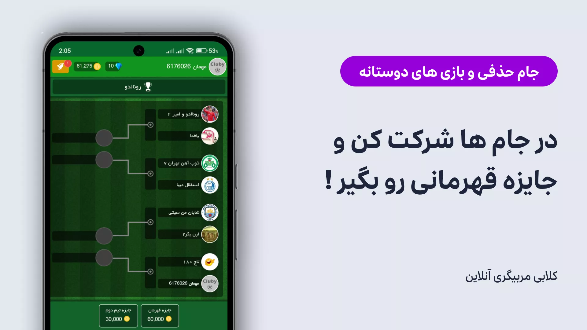 همین امروز کلابی را نصب کنید و به جمع مربیان حرفهای بپیوندید. اولین جمعه پس از نصب، فرصت ورود به هرم لیگها را از دست ندهید و ماجراجویی مربیگری خود را آغاز کنید!