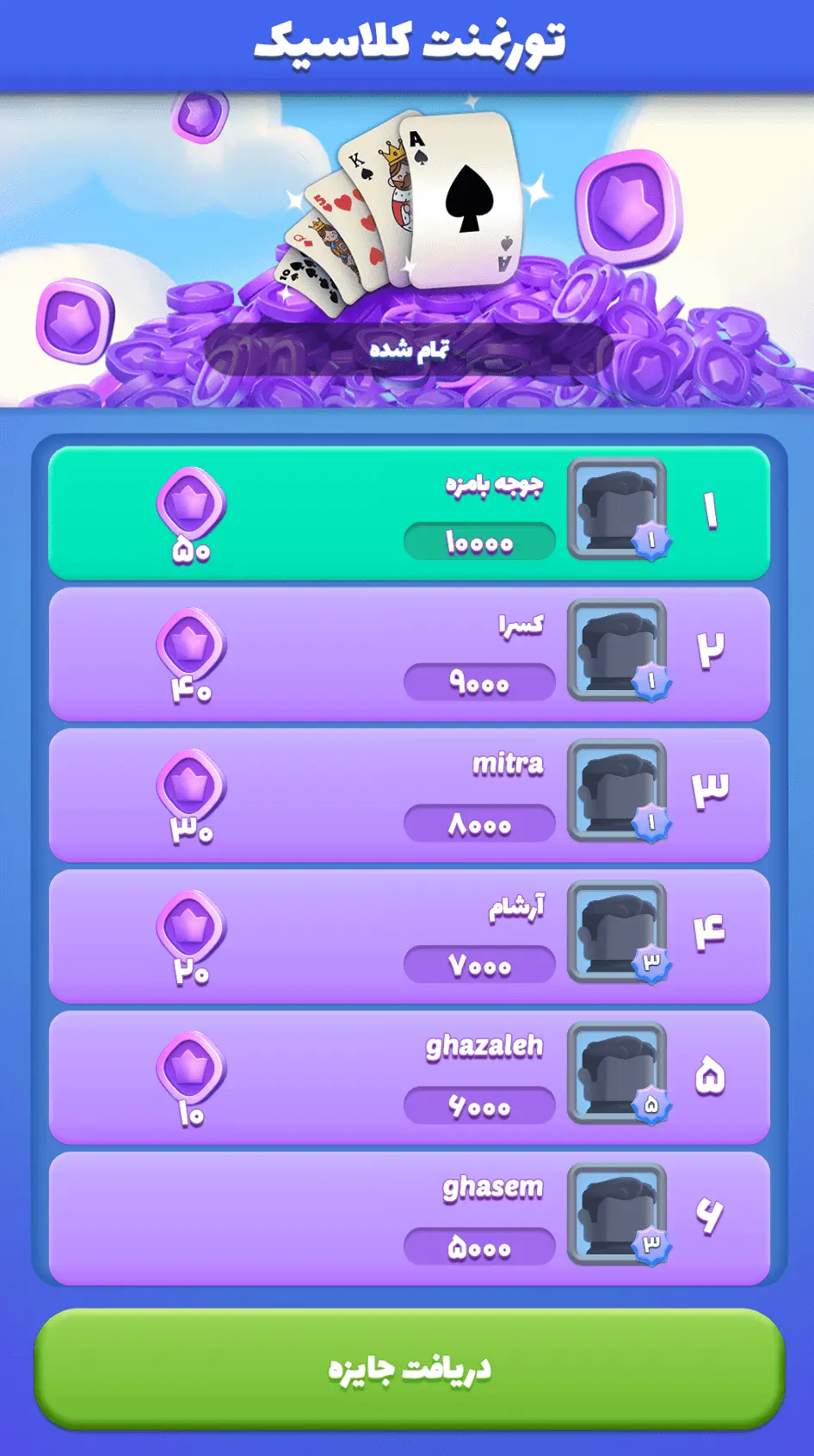 باگ بزرگش اینه اینهمه بازی کنی امتیاز جمع کنی آخر بار میزنه بازنده هرچی بازی کردی از بین میره